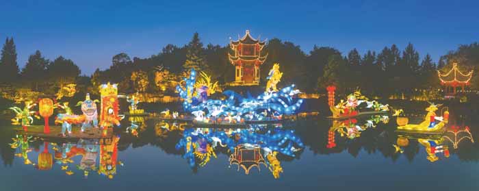 Hosted in the Chinese and Japanese gardens, come dusk the waterfalls, decorative boats, stones and other displays take on new forms as they become illuminated for an evening of magic.