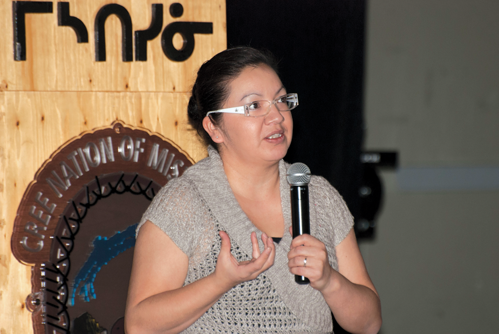 Nicholls says they were careful to balance Canadian speakers with Crees – these included EEPF Director Reggie Bobbish, Kathleen Wooton from the CSB, and Lisa Petagumskum from the CHB speaking about the Cree SNAP (Stop Now and Plan) anger-management program for kids. Also speaking were Nishiyuu Walkers founder David Kawapit and former Deputy Grand Chief Ashley Iserhoff, both of whom spoke about being bullied when they were younger. And from a Cree Nation farther afield, Plains Cree comedian Don Burnstick gave a workshop on bullying, followed by a performance the following night.