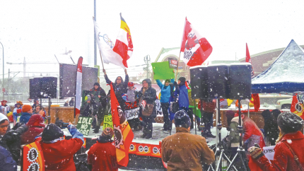First Nations activists, including many from Idle No More, joined labour and social groups during the convention to protest a hard political turn to the right by the governing party and to build a strong movement with a view toward the next federal election in 2015.