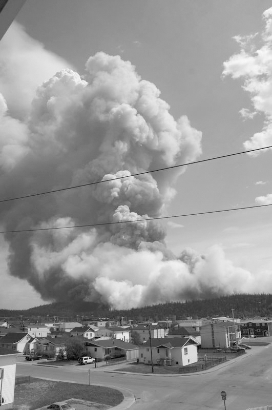 “The fire isn’t close to the community,” said George Swallow, the Fire Department’s Director of Public Safety. “It got as close as 30 or 40 kilometres to the community but it’s heading southeast now.