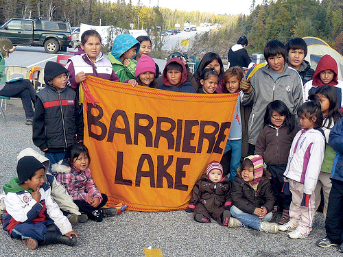 On October 6 at 6:30 am, 75 community members, along with 20 non-Native supporters, set up a barricade on the 117 near Grand-Remous, where the highway joins du Lac Rapide Road in La Verandrye wildlife reserve. In the crowd, there were 44 children and several Elders from Barriere Lake.
