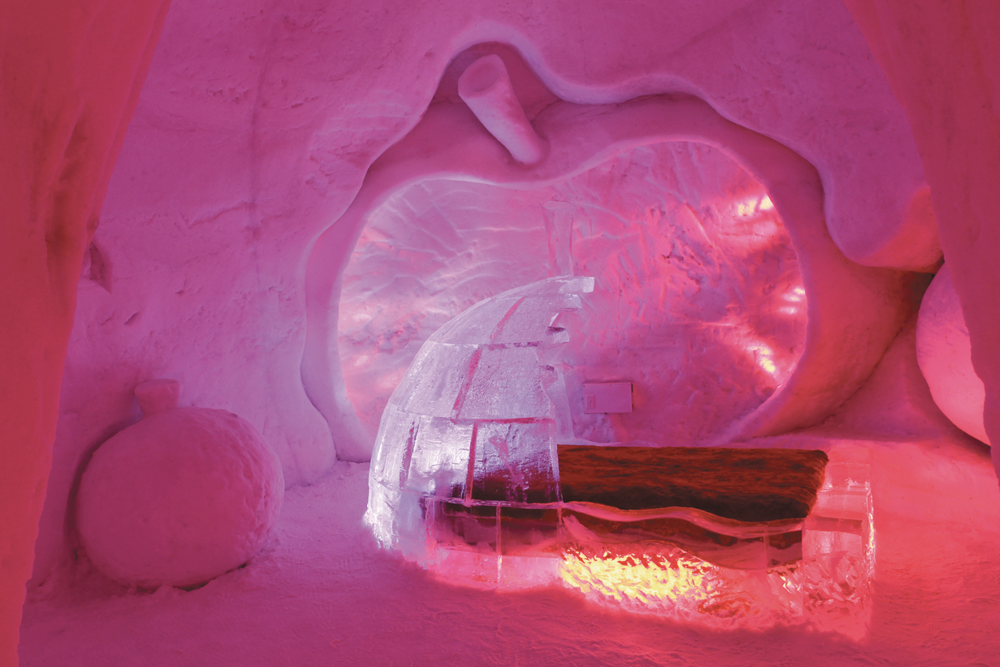 This icy paradise features an ice hotel, heated spas, snow igloos, an ice restaurant with a well-known chef, an ice bar with a terrace, meeting rooms, an ice chapel for weddings, a snow-sculpture exhibit, a snow labyrinth, a snow slide and a series of incredible replicas of Montreal buildings.
