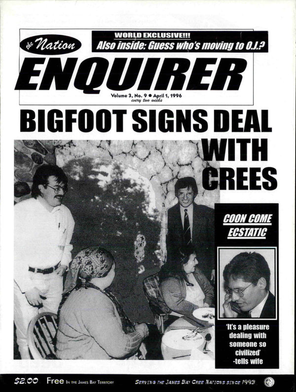 Everyone thought the Crees were meeting in Waskaganish only to discuss the dimishing goose population but Grand Chief Coon Come had a surprise for the delegates that no one expected. On hand was a special representive from the other James Bay First Nation—the people commonly called Bigfoots/Sasquatches.