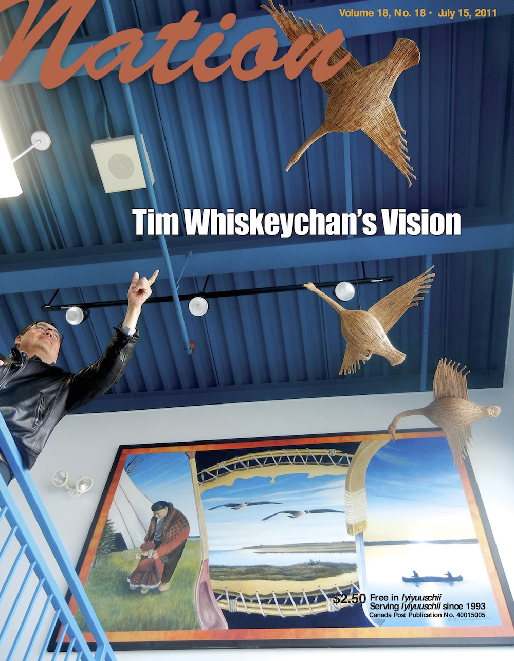 Tim Whiskeychan is a productive and prolific artist and generalist of sorts when it comes to the visual arts – he’s a painter, illustrator, sculptor and craftsman. Many samples of his work are displayed in his hometown of Waskaganish and throughout the greater James Bay community.